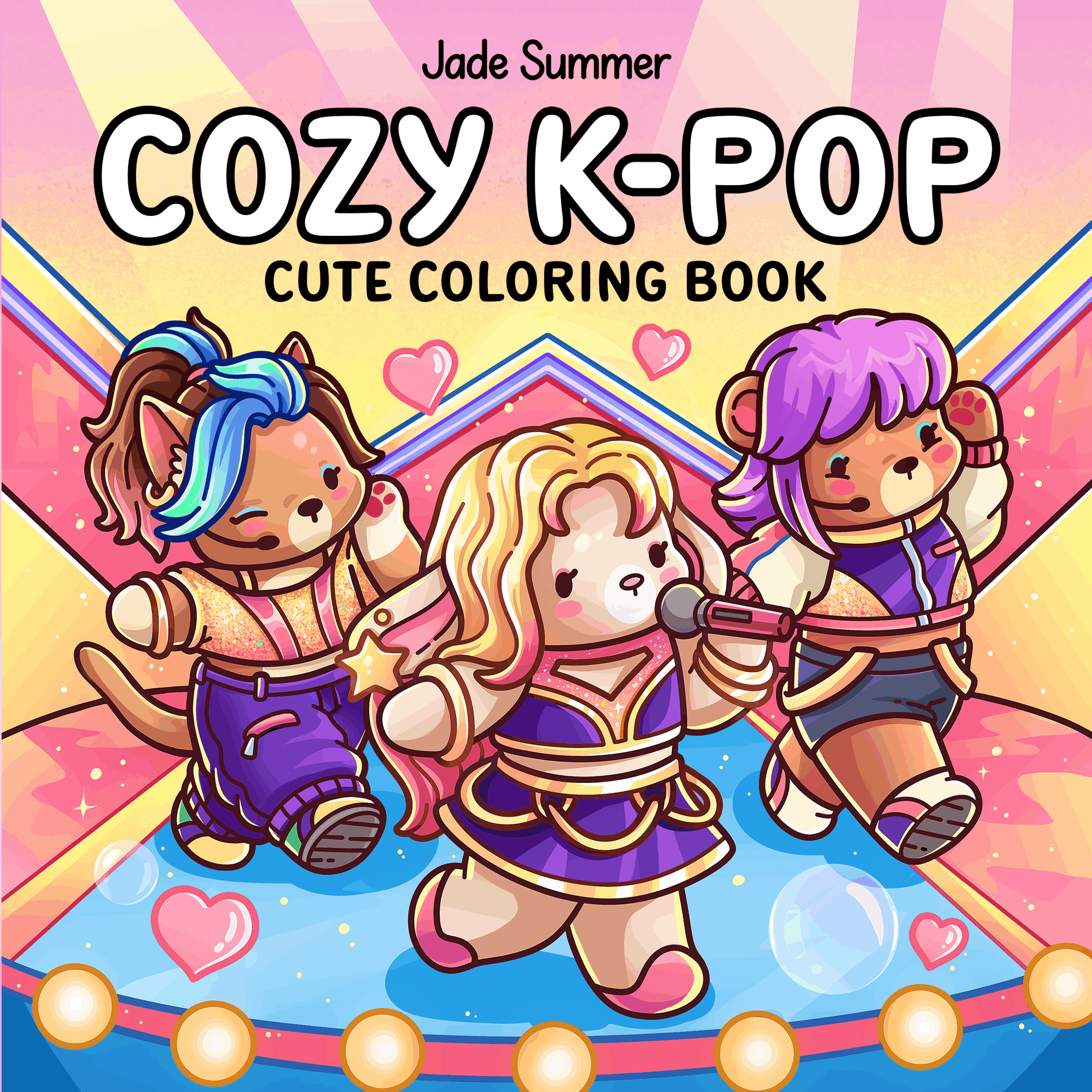 I illustrated Cozy K-Pop, hand-drawing 40 cozy, charming scenes inspired by the energy, fashion, and community that make Korean pop culture so beloved worldwide. From cute idols to lively fan moments, each page uses bold, easy-to-color lines to celebrate the creativity, connection, and artistry at the heart of K-Pop while offering a relaxing, feel-good coloring experience for fans of all ages.